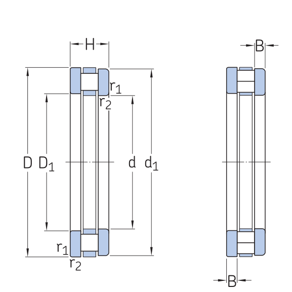 滾動體與套圈擋邊摩擦小,適于高速旋轉。根據套圈有無擋邊,可以分有NU、NJ、NUP、N、NF等單列圓柱滾子軸承,及NNU、NN等雙列圓柱滾子軸承。該軸承是內圈、外圈可分離的結構。內圈或外圈無擋邊的圓柱滾子軸承,其內圈和外圈可以向軸向作相對移動,所以可以作為自由端軸承使用。在內圈和外圈的某一側有雙擋邊,另一側的套圈有單個擋邊的圓柱滾子軸承,可以承受一定程度的一個方向軸向負荷。一般使用鋼板沖壓保持架,或銅合金車制實體保持架。但也有一部分使用聚酰胺成形保持架。